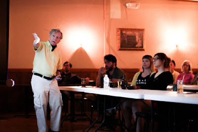 Al Gedicks of the Wisconsin Resources Protection Council speaks with passion about the dangers of sulfide mining during his presentation about the Back 40 mine project in Sturgeon Bay, Wis., on June 6, 2017. He is the author of Resource Rebels: Native Challenges to Mining and Oil Corporations, which tells how Native and non-Native concerned citizens worked together to prevent harmful mining in Wisconsin. (Photo courtesy Al Gedicks)