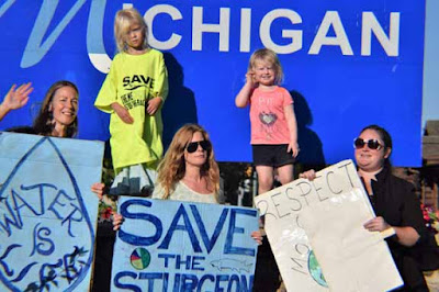 On July 19, 2017, I had met Regina Chaltry of Join the River Coalition at a meeting of the Michigan Department of Natural Resources (MDNR) Western Upper Peninsula Citizens Advisory Council, where she and three colleagues asked the MDNR to consider the danger of Aquila Resources’ proposed open-pit Back Forty gold, copper and zinc mine next to the Menominee River. The Council listened, but declined to take any action. The DNRs of Michigan and Wisconsin have been working to restore fish habitat, especially the sturgeon, for decades. The Coalition felt the opening of the mine would create new environmental hazards for the river. At Regina’s invitation, I attended the Coalition’s event in Marinette a week later.